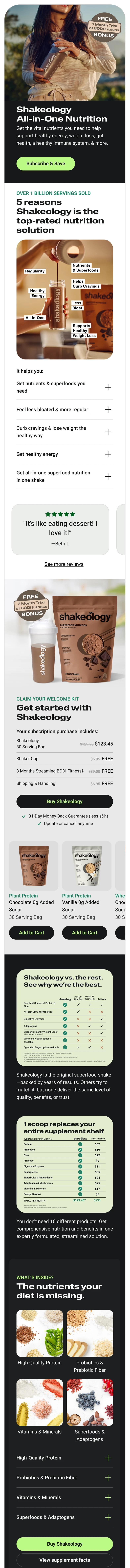 As Senior Art Director at BODi, I designed ecommerce content for a range of health, fitness, and wellness supplements. From directing product photography to designing PDP assets, sell pages, and A+ galleries, every asset was designed to be visually engaging and on-brand. This included infographics, comparison charts, and benefit breakdowns that distilled complex ingredient science into clear product storytelling built to drive purchase decisions. I also used A/B testing to continually iterate and improve content performance.